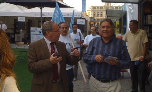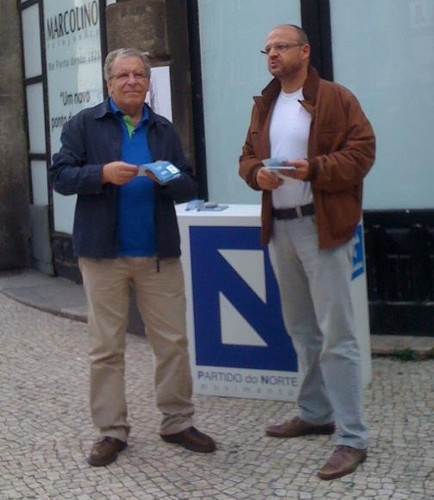 O Secretário-geral do Partido da Terra da Galiza, Joám Evans Pim, visitou-nos hoje na rua de Santa Catarina, no Porto, quando estávamos em campanha de recolha de assinaturas para a legalização do Partido do Norte.