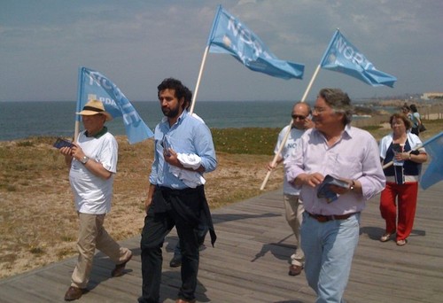 Hoje de manhã, elementos do Movimento Partido do Norte, concorrentes ao Círculo Eleitoral do Porto nas listas do Partido Democrático do Atlântico (PDA), em campanha nas praias de Gaia.