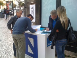 Hoje de manhã, na rua de Santa Catarina no Porto, numa campanha de recolha de assinaturas para a legalização do Partido do Norte.